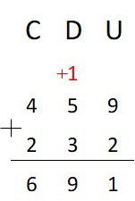 Este procedimento deve ser repetido em qualquer ordem caso a soma seja maior que 9. Ao completar uma ordem seguinte, devemos sempre acrescentá-la na coluna correta.