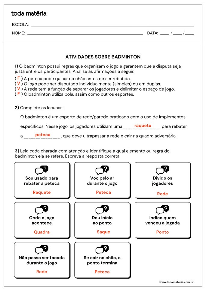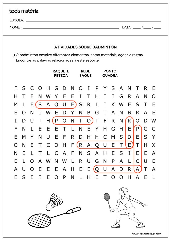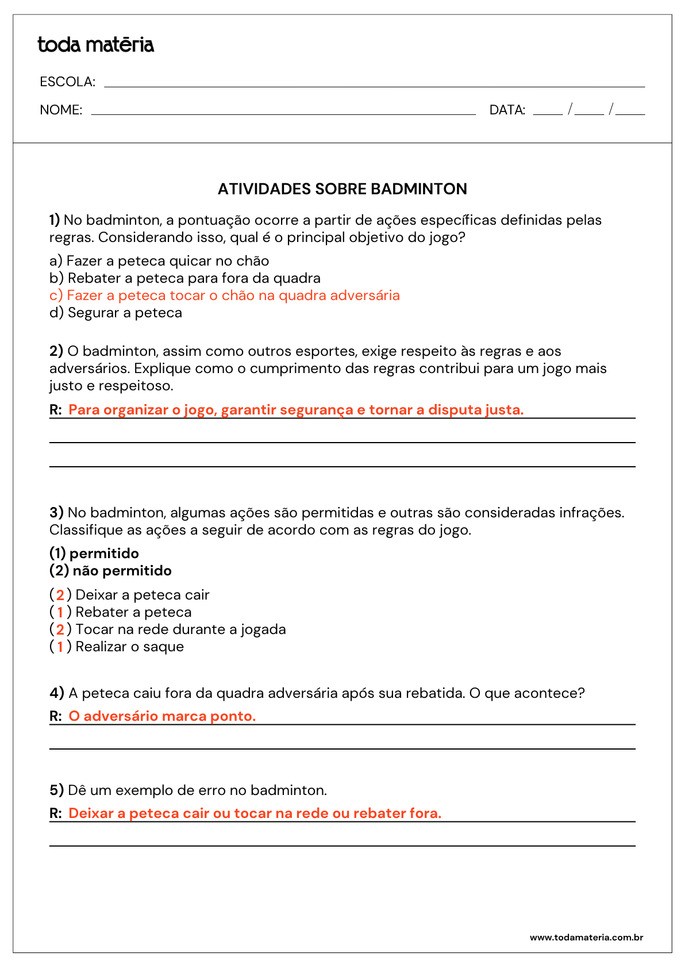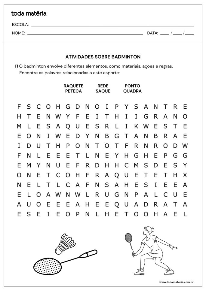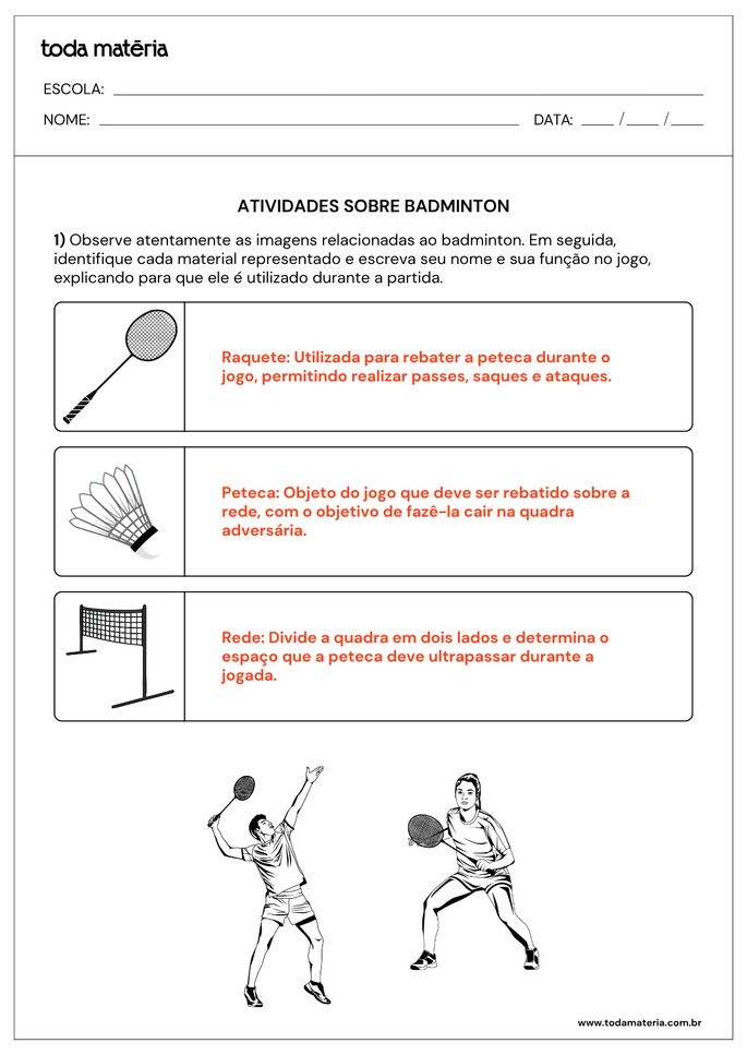 CARPI, Juliana. Atividades sobre as regras do badminton (para imprimir). Toda Matéria, [s.d.]. Disponível em: https://www.todamateria.com.br/atividade-para-imprimir-badminton/. Acesso em: