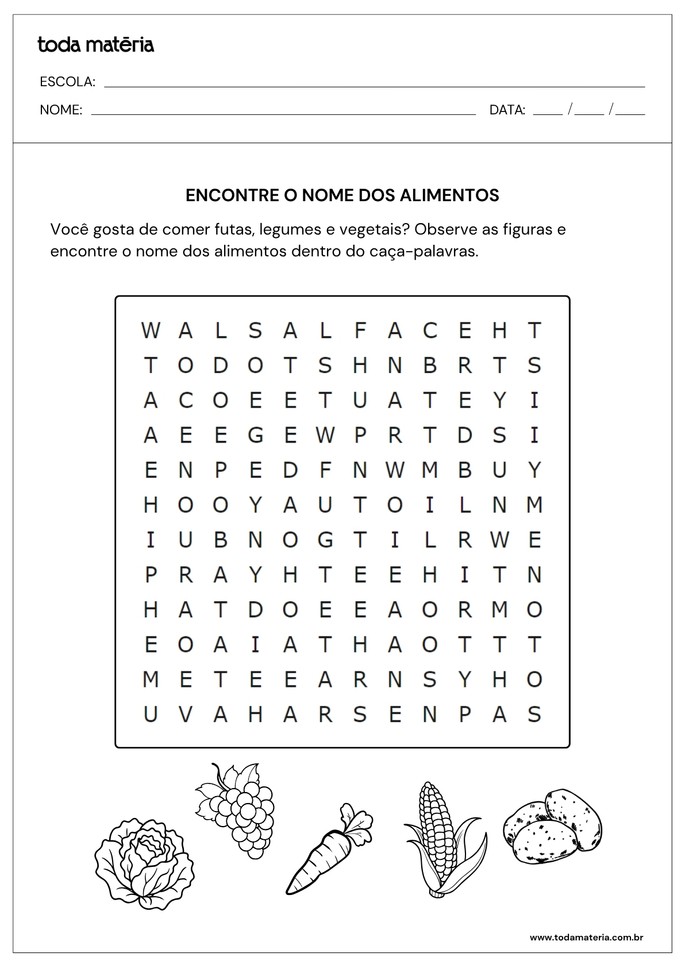 LUIS, Rodrigo. Atividades com caça-palavras para alfabetizar (prontas para imprimir). Toda Matéria, [s.d.]. Disponível em: https://www.todamateria.com.br/atividades-com-caca-palavras-para-alfabetizar-prontas-para-imprimir/. Acesso em: