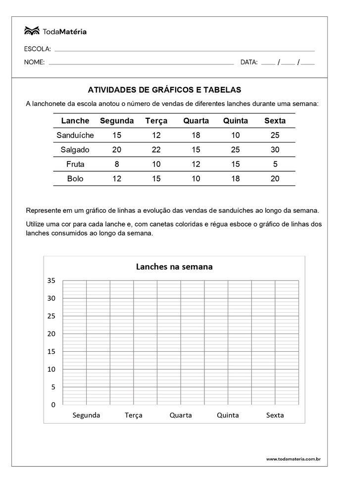 Gráficos e tabelas são ferramentas úteis para ler, organizar e interpretar informações. Imprima e utilize estas atividades em suas aulas, ou para praticar.