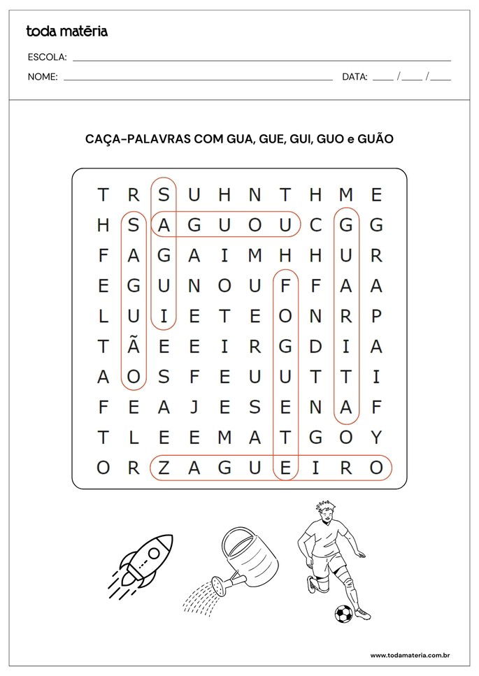 FERNANDES, Márcia. Atividades com GUA GUE GUI GUO GUÃO (para imprimir). Toda Matéria, [s.d.]. Disponível em: https://www.todamateria.com.br/atividades-com-gua-gue-gui-guo-guao-para-imprimir/. Acesso em: