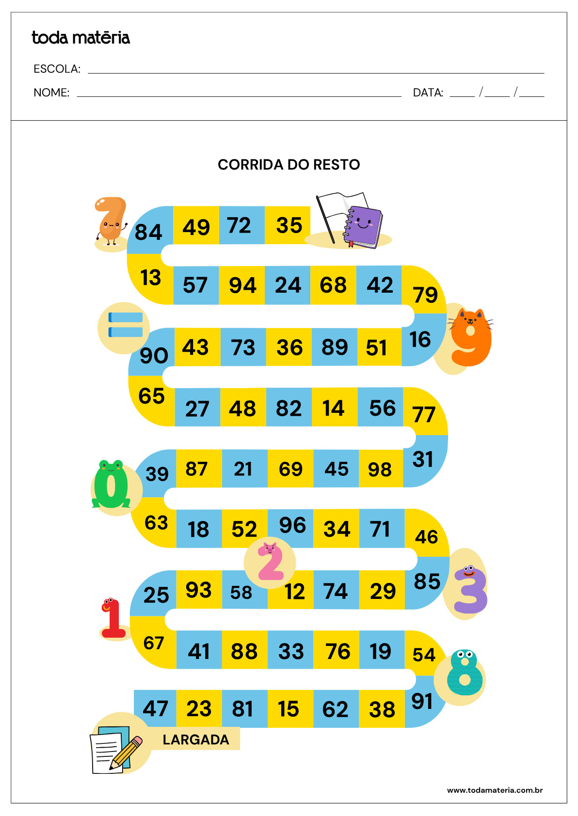 Tabuleiro do jogo Corrida do Resto para imprimir