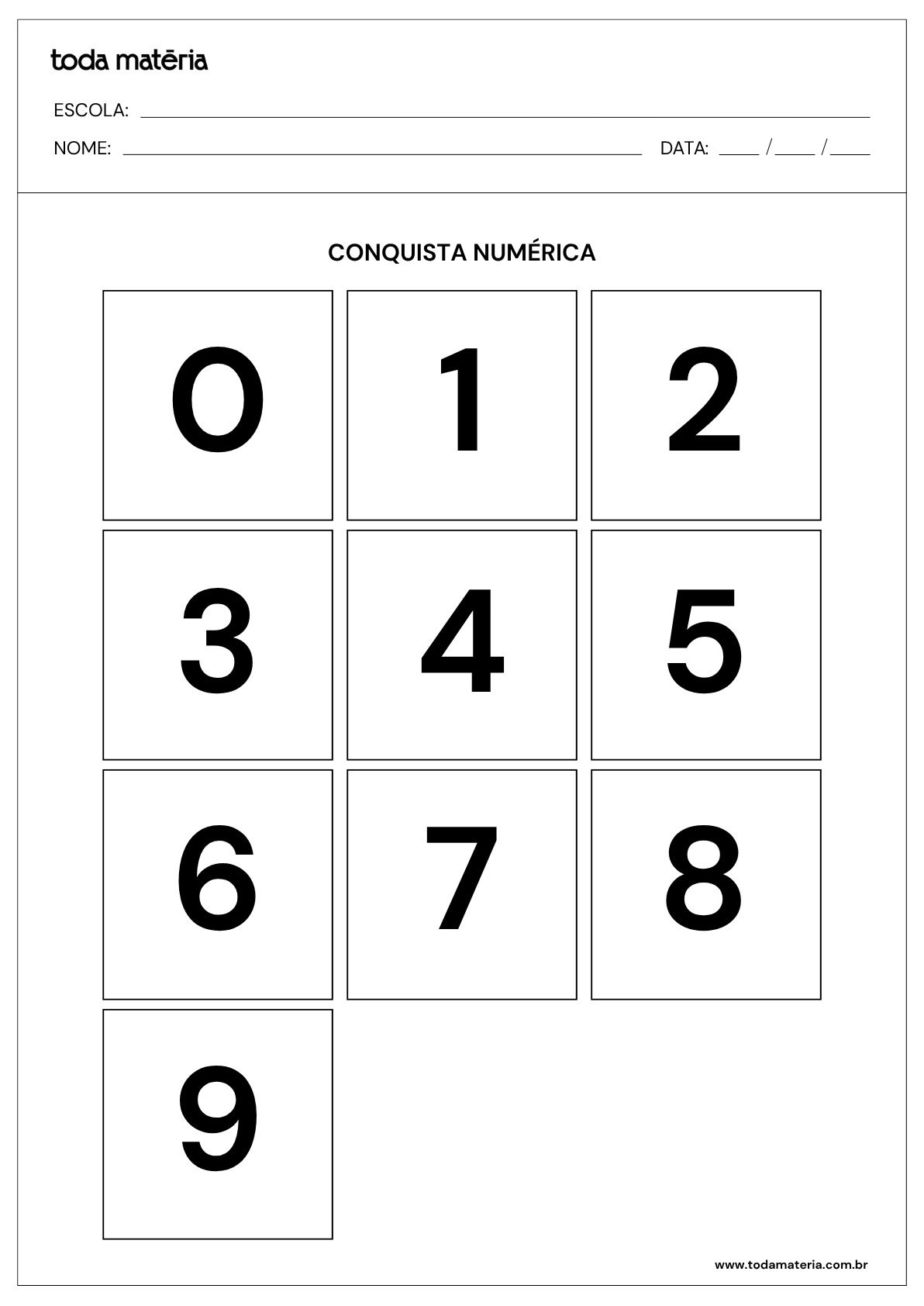 - Cartões com algarismos de 0 a 9;