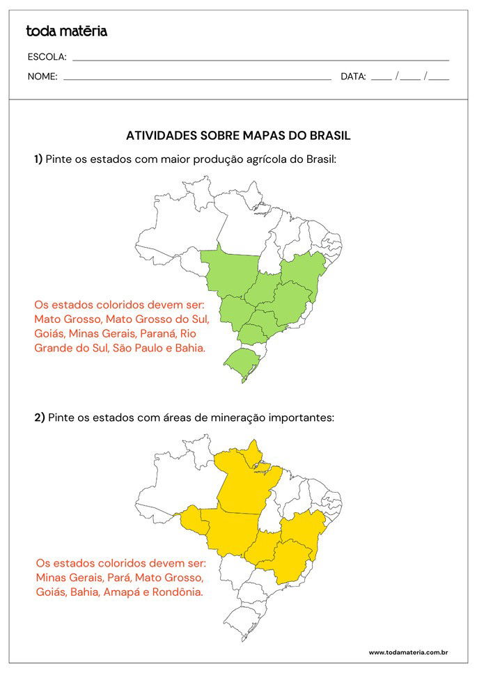 Confira as atividades a seguir com mapas do Brasil de diversas temáticas para colorir.