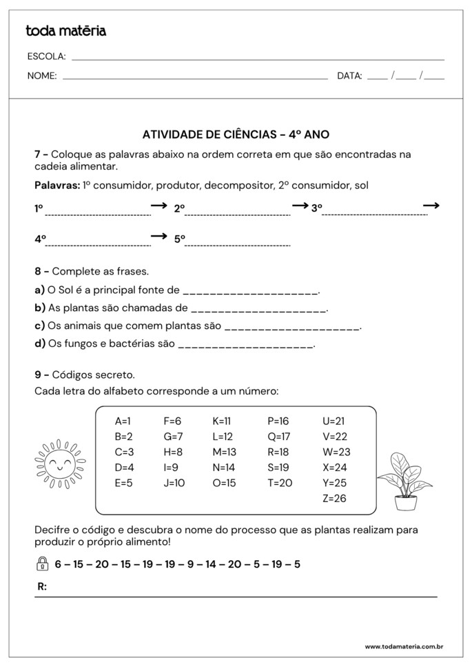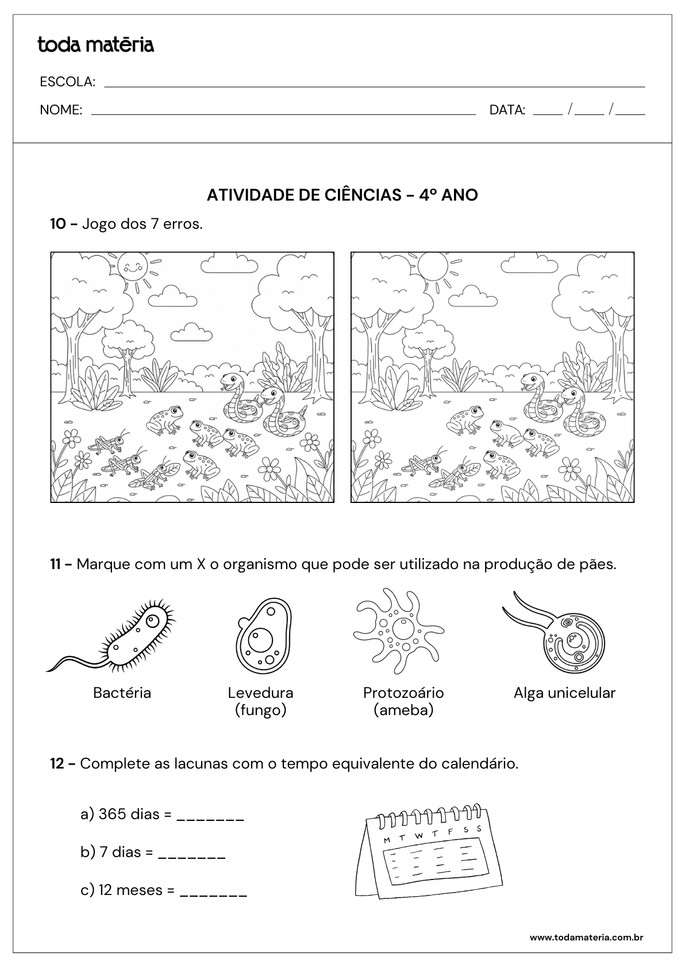 BARCELOS, Eduardo. Atividades de Ciências para o 4º ano (para imprimir). Toda Matéria, [s.d.]. Disponível em: https://www.todamateria.com.br/atividades-de-ciencias-para-o-4-ano-para-imprimir/. Acesso em:
