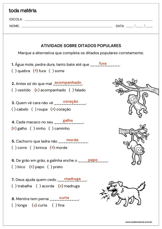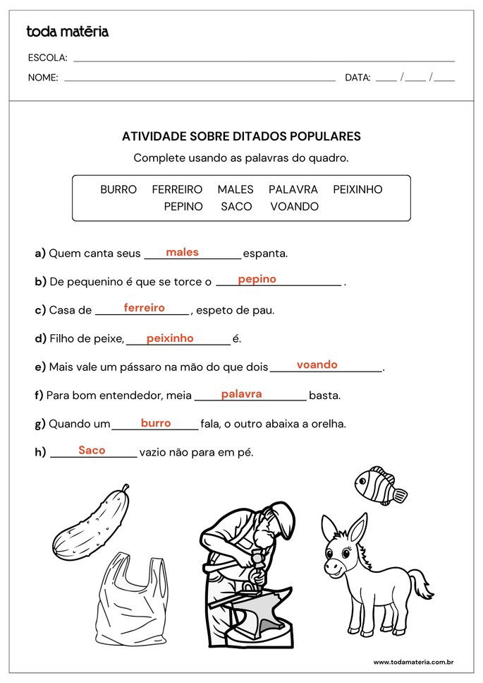 FERNANDES, Márcia. Atividades de completar ditados populares (para crianças). Toda Matéria, [s.d.]. Disponível em: https://www.todamateria.com.br/atividades-de-completar-ditados-populares-para-criancas/. Acesso em:
