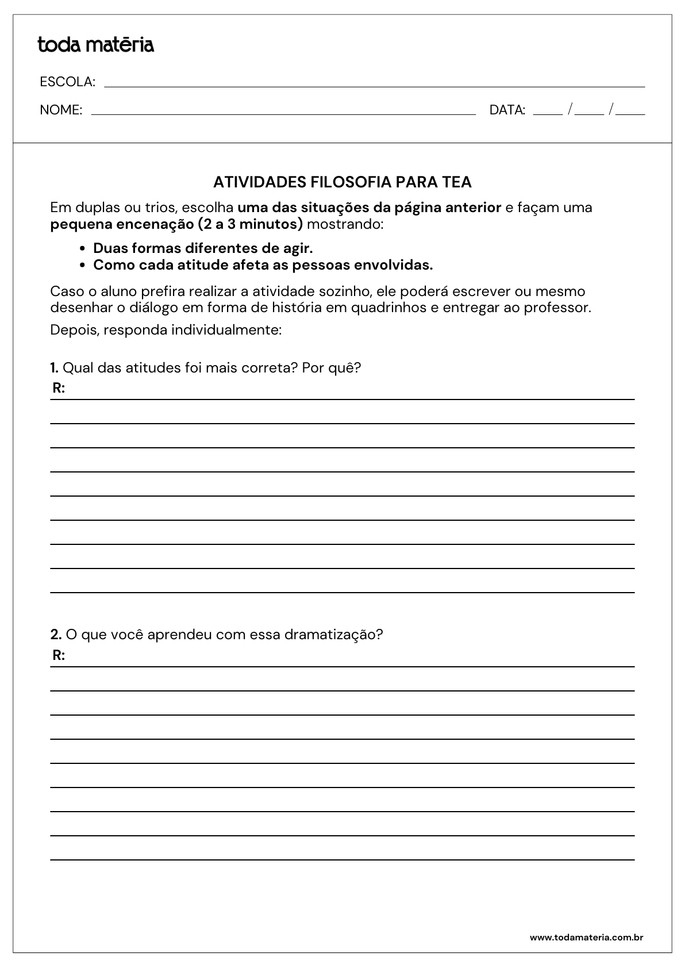 Atividades de filosofia adaptadas para alunos com autismo (para imprimir)
