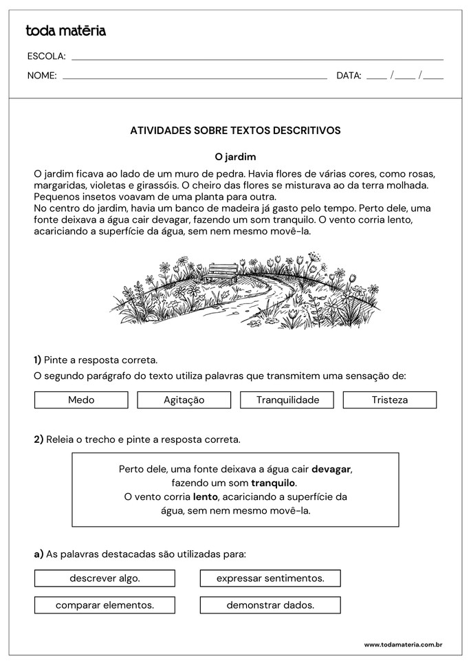 LUIS, Rodrigo. Atividades de interpretação de textos descritivos (prontos para imprimir). Toda Matéria, [s.d.]. Disponível em: https://www.todamateria.com.br/atividades-de-interpretacao-de-textos-descritivos-prontos-para-imprimir/. Acesso em: