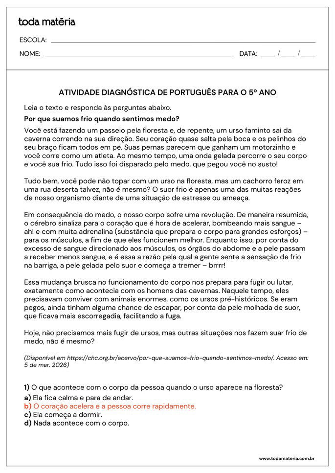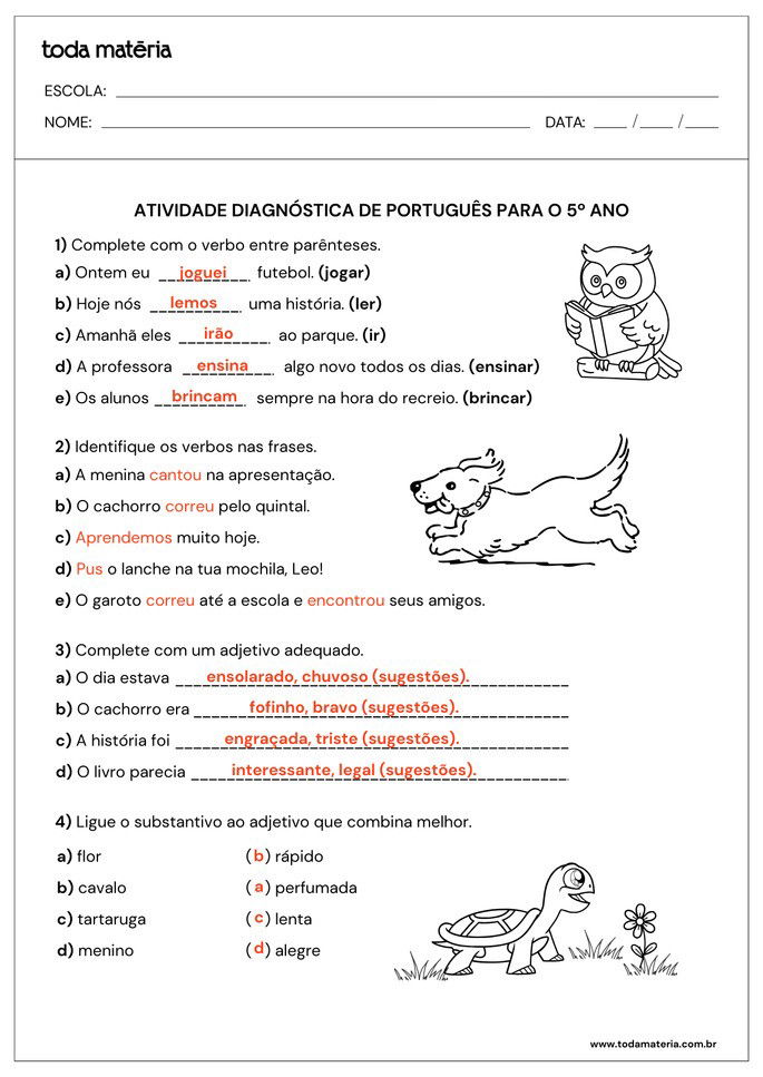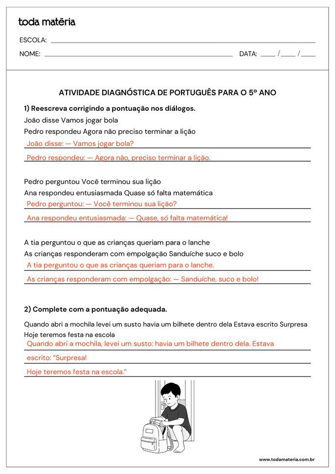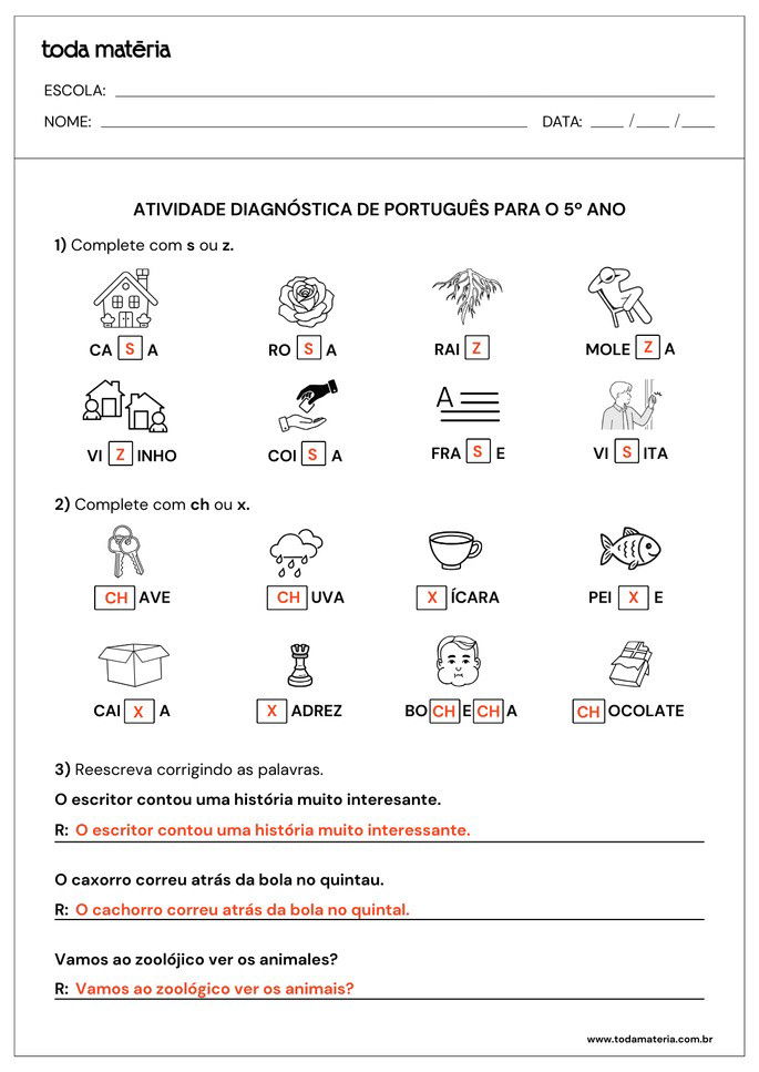 FERNANDES, Márcia. Atividades diagnósticas de Português para o 5º ano. Toda Matéria, [s.d.]. Disponível em: https://www.todamateria.com.br/atividades-diagnosticas-de-portugues-para-o-5-ano/. Acesso em: