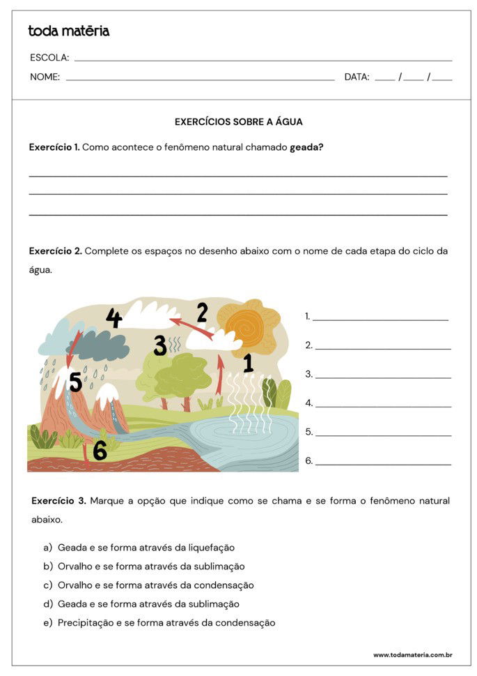 CASTILHO, Rubens. Atividades sobre a água para o 4º e 5º ano (para imprimir). Toda Matéria, [s.d.]. Disponível em: https://www.todamateria.com.br/atividades-sobre-a-agua/. Acesso em: