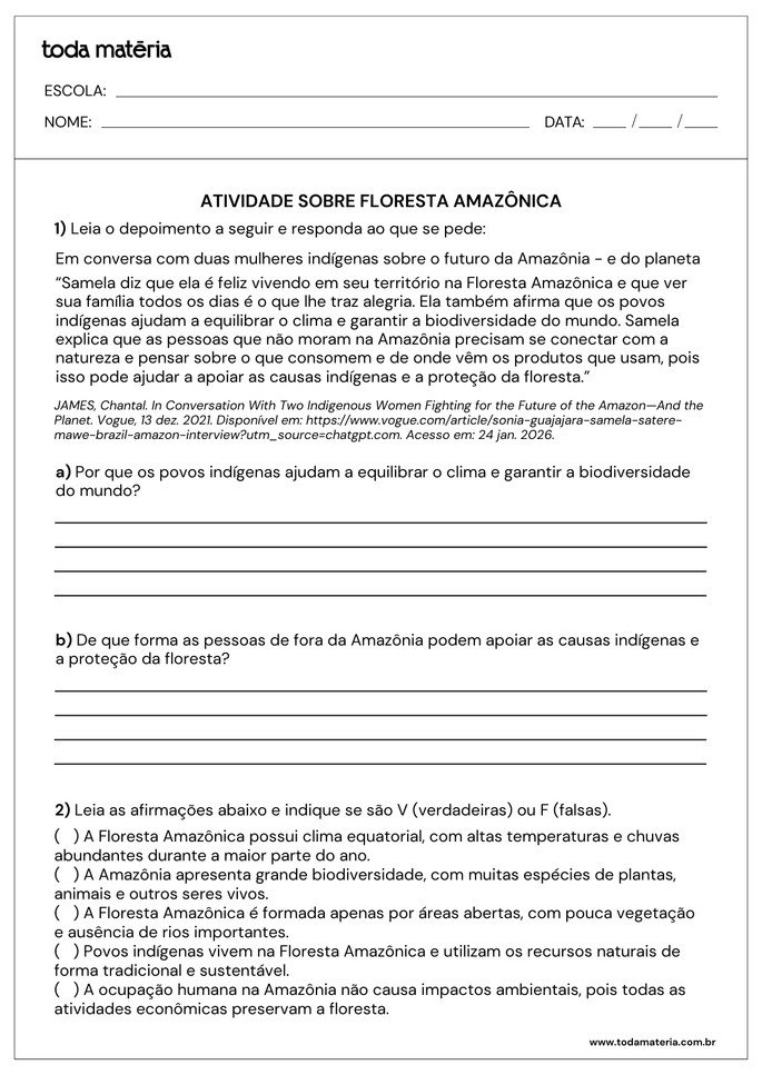 SCOFANO, Amanda. Atividades sobre a floresta amazônica (prontas para imprimir). Toda Matéria, [s.d.]. Disponível em: https://www.todamateria.com.br/atividades-sobre-a-floresta-amazonica-prontas-para-imprimir/. Acesso em:
