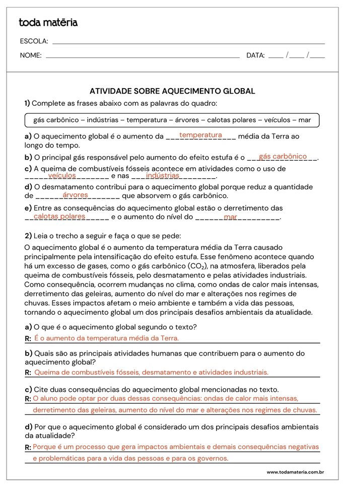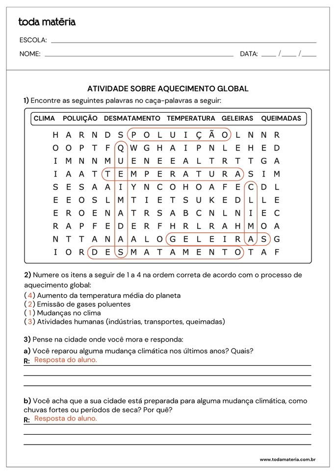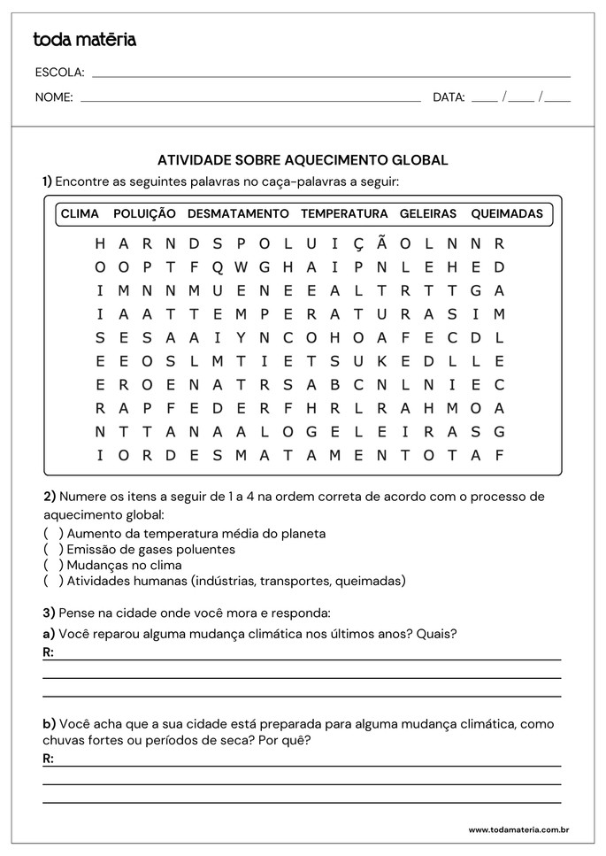 SCOFANO, Amanda. Atividades sobre aquecimento global (prontas para imprimir). Toda Matéria, [s.d.]. Disponível em: https://www.todamateria.com.br/atividades-sobre-aquecimento-global-prontas-para-imprimir/. Acesso em: