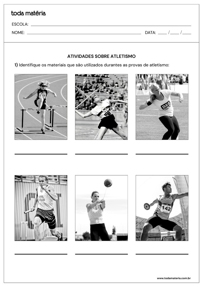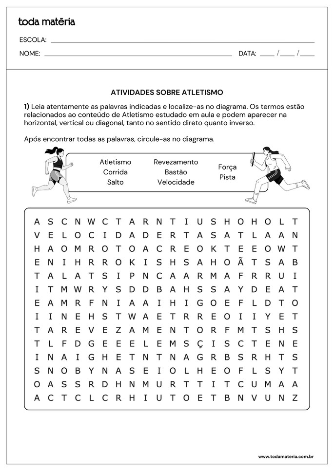 CARPI, Juliana. Atividades sobre atletismo (para imprimir). Toda Matéria, [s.d.]. Disponível em: https://www.todamateria.com.br/atividades-sobre-atletismo-para-imprimir/. Acesso em: