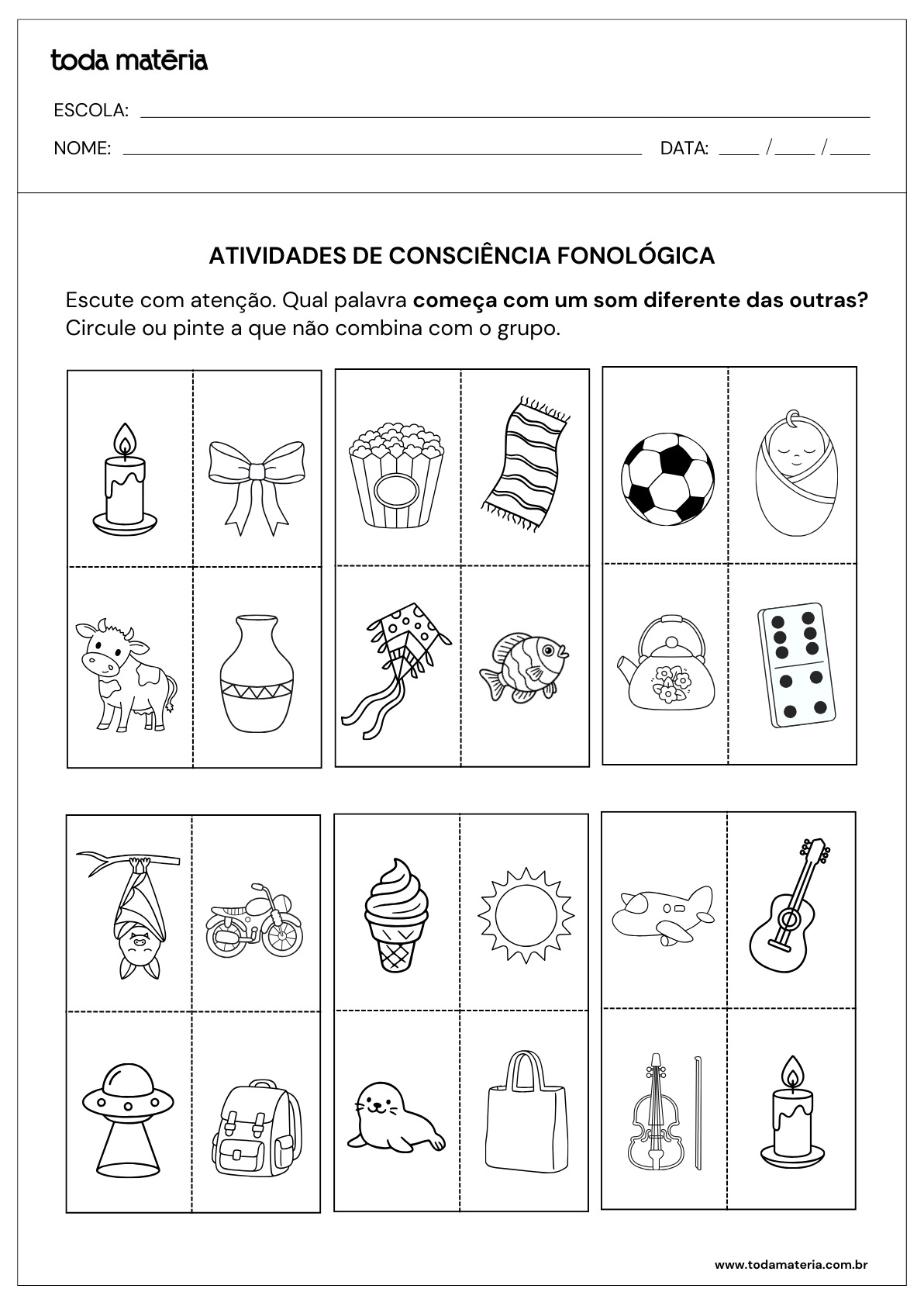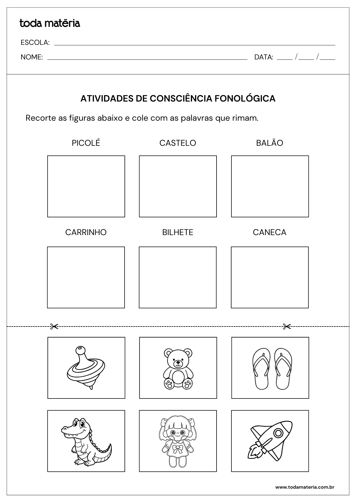 FERNANDES, Márcia. Atividades sobre consciência fonológica para alfabetização (para imprimir). Toda Matéria, [s.d.]. Disponível em: https://www.todamateria.com.br/atividades-sobre-consciencia-fonologica-para-alfabetizacao-para-imprimir/. Acesso em: