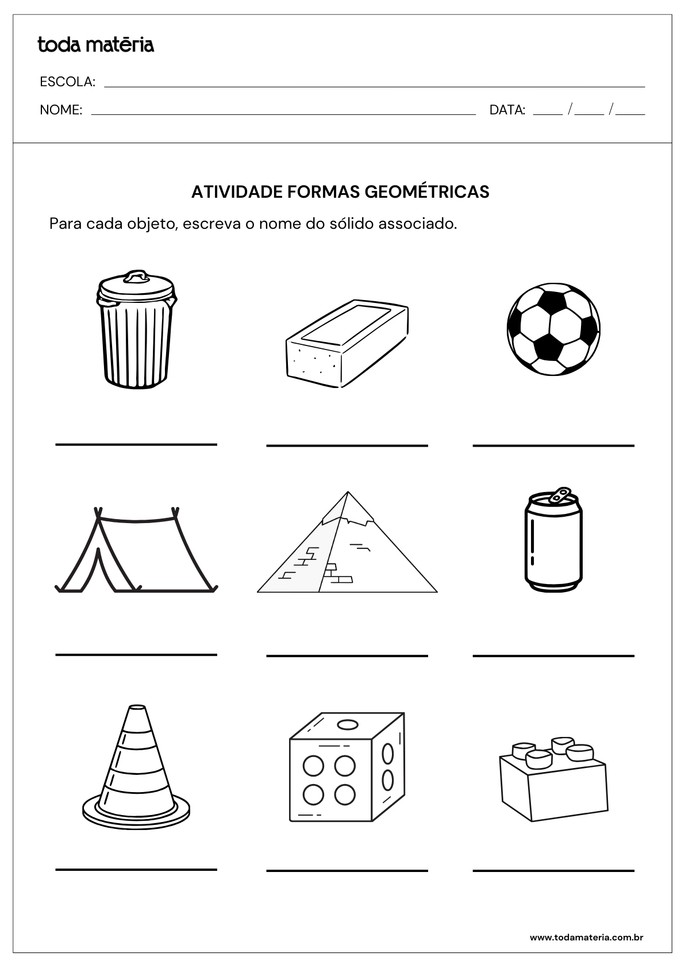 ASTH, Rafael. Atividades sobre formas geométricas para 3º ano do Fundamental. Toda Matéria, [s.d.]. Disponível em: https://www.todamateria.com.br/atividades-sobre-formas-geometricas-para-3-ano-do-fundamental/. Acesso em: