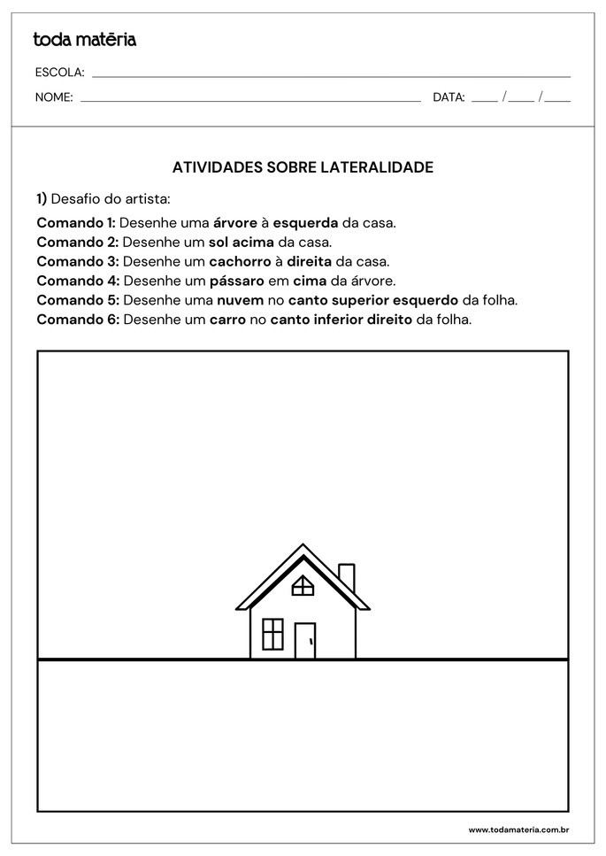 CARPI, Juliana. Atividades sobre lateralidade (prontas para imprimir). Toda Matéria, [s.d.]. Disponível em: https://www.todamateria.com.br/atividades-sobre-lateralidade-prontas-para-imprimir/. Acesso em: