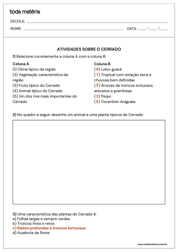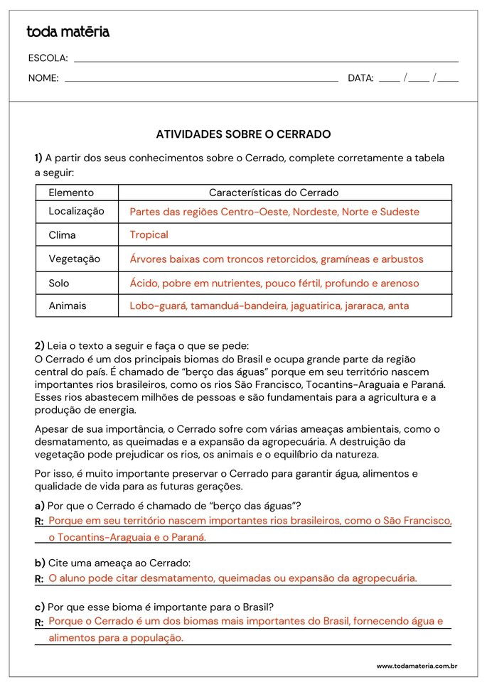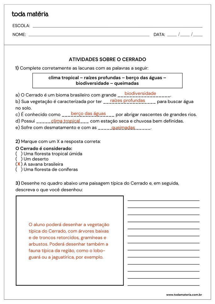 SCOFANO, Amanda. Atividades sobre o Cerrado (para imprimir). Toda Matéria, [s.d.]. Disponível em: https://www.todamateria.com.br/atividades-sobre-o-cerrado-para-imprimir/. Acesso em: