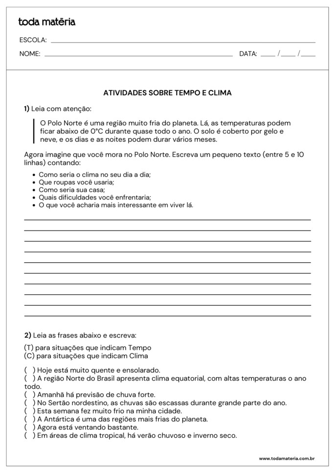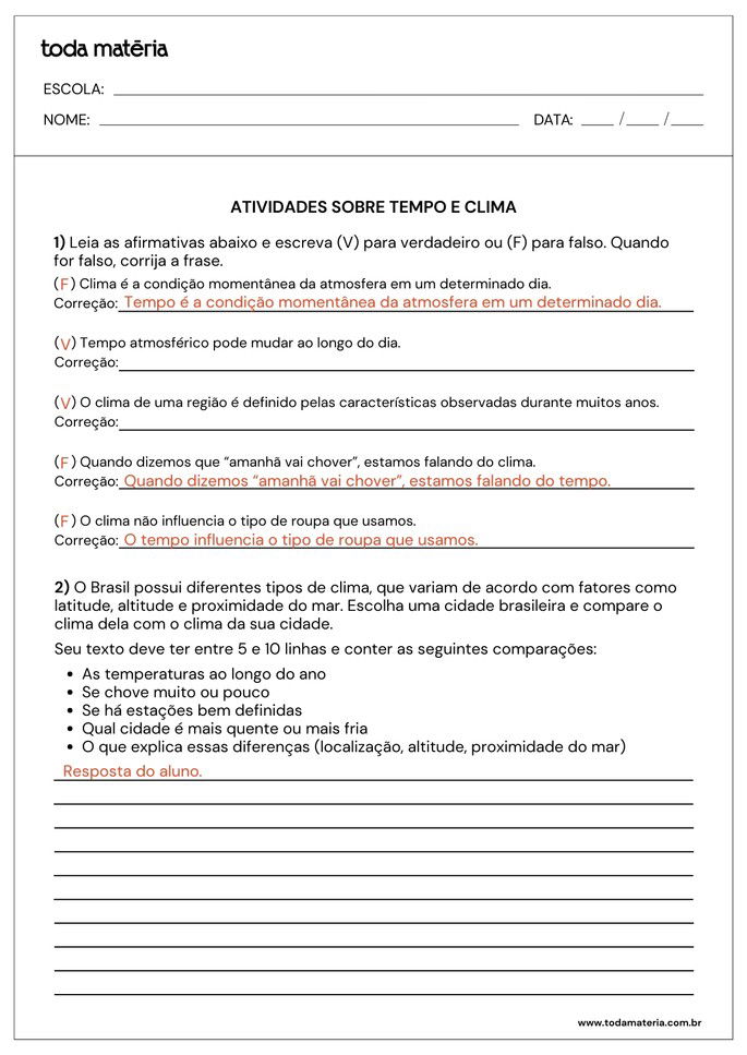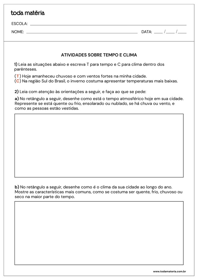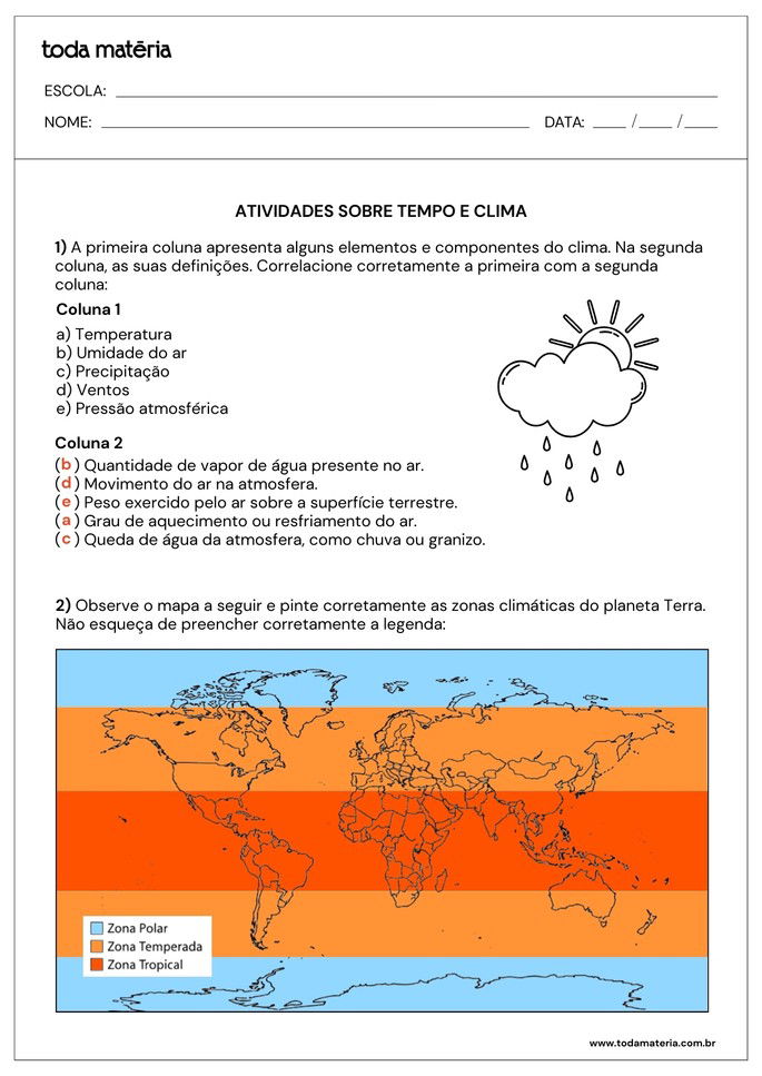 SCOFANO, Amanda. Atividades sobre o tempo e o clima para o 6º ano (para imprimir). Toda Matéria, [s.d.]. Disponível em: https://www.todamateria.com.br/atividades-sobre-o-tempo-e-o-clima-para-o-6-ano-para-imprimir/. Acesso em: