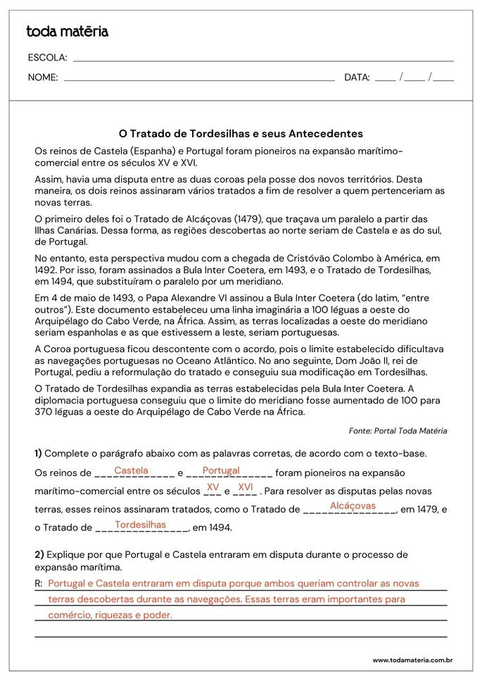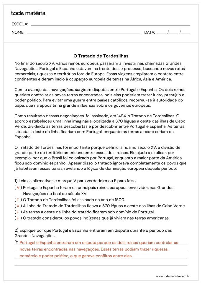 PEREIRA, Lucas. Atividades sobre o Tratado de Tordesilhas (para imprimir). Toda Matéria, [s.d.]. Disponível em: https://www.todamateria.com.br/atividades-sobre-o-tratado-de-tordesilhas-para-imprimir/. Acesso em: