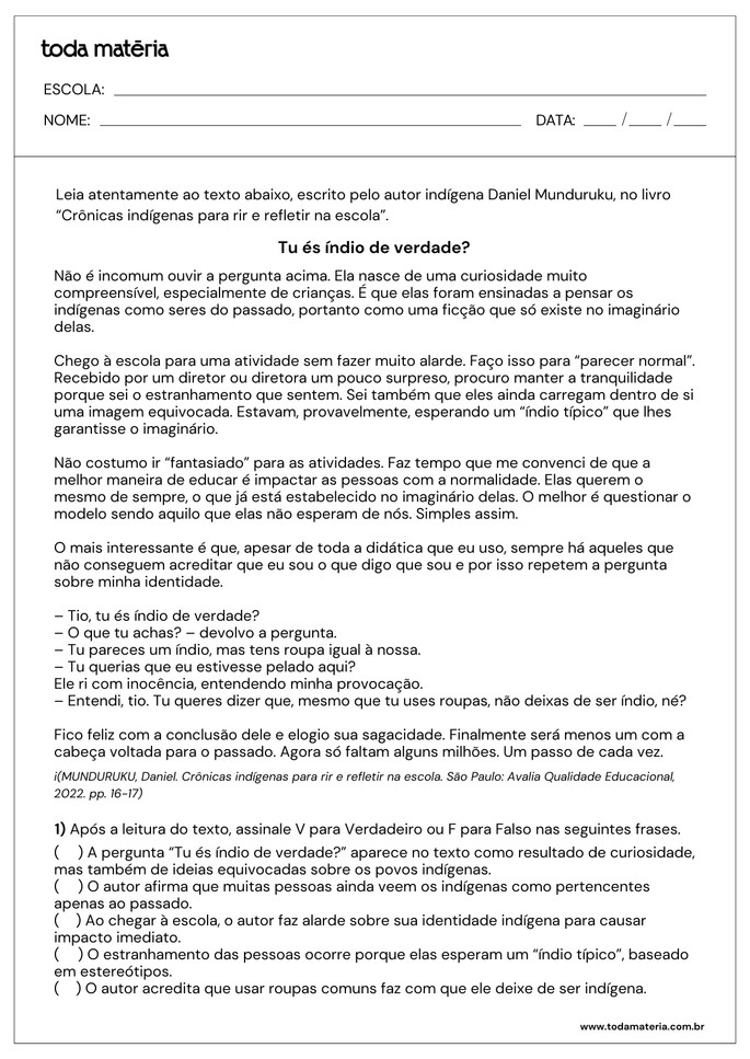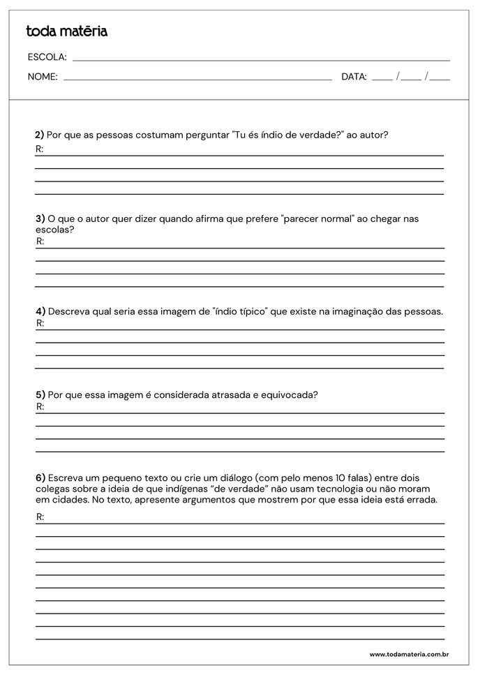 PEREIRA, Lucas. Atividades sobre os povos indígenas das Américas (para imprimir). Toda Matéria, [s.d.]. Disponível em: https://www.todamateria.com.br/atividades-sobre-os-povos-indigenas-das-americas-para-imprimir/. Acesso em: