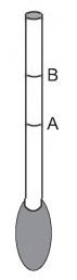 Um estudante construiu um densímetro, esquematizado na figura, utilizando um canudinho e massa de modelar. O instrumento foi calibrado com duas marcas de flutuação, utilizando água (marca A) e etanol (marca B) como referências.