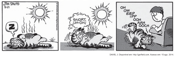 A faixa espectral da radiação solar que contribui fortemente para o efeito mostrado na tirinha é caracterizada como