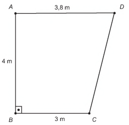 O supervisor de um laboratório precisa comprar um aparelho para climatizar o ambiente. Nele ficarão duas pessoas mais uma centrífuga que emite calor. O laboratório tem forma de trapézio retângulo, com as medidas apresentadas na figura.