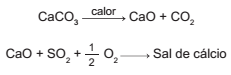 Os calcários são materiais compostos por carbonato de cálcio, que podem atuar como sorventes do dióxido de enxofre (SO2 ), um importante poluente atmosférico. As reações envolvidas no processo são a ativação do calcário, por meio de calcinação, e a fixação do SO2 com a formação de um sal de cálcio, como ilustrado pelas equações químicas simplificadas.