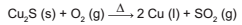 O cobre presente nos fios elétricos e instrumentos musicais é obtido a partir da ustulação do minério calcosita (Cu2S). Durante esse processo, ocorre o aquecimento desse sulfeto na presença de oxigênio, de forma que o cobre fique "livre" e o enxofre se combine com o O2 produzindo SO2 , conforme a equação química: