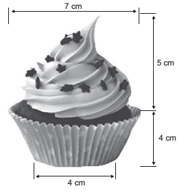 Em uma confeitaria, um cliente comprou um cupcake (pequeno bolo no formato de um tronco de cone regular mais uma cobertura, geralmente composta por um creme), semelhante ao apresentado na figura: