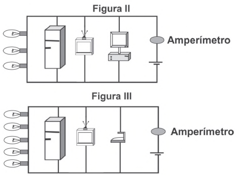 Um eletricista fez duas ligações, que se encontram representadas pelas figuras II e III.