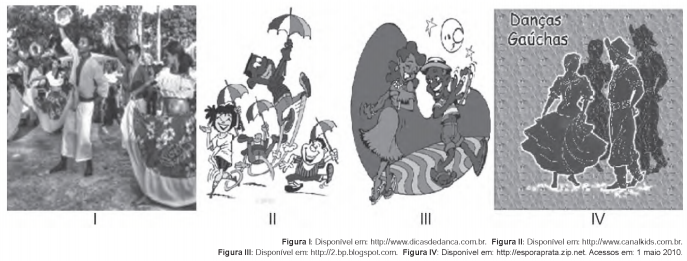 Cada região do país, por meio de suas danças populares, expressa sua cultura, que envolve aspectos sociais, econômicos, históricos, entre outros. As danças provocam a associação entre música e ritmo e o desenvolvimento de maior sensibilidade dos órgãos sensoriais. A ampliação da intensidade da audição aumenta a concentração, possibilitando o processo de transformação do ritmo musical em movimento espontâneo. Como exemplo de danças, tem-se o carimbó, na região Norte, e as danças gaúchas, na região Sul.