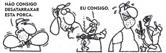 Para permitir a ocorrência do fato observado na tirinha, a partir do menor aquecimento do conjunto, o parafuso e a