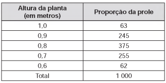 Após a redescoberta do trabalho de Gregor Mendel, vários experimentos buscaram testar a universalidade de suas leis. Suponha um desses experimentos, realizado em um mesmo ambiente, em que uma planta de linhagem pura com baixa estatura (0,6 m) foi cruzada com uma planta de linhagem pura de alta estatura (1,0 m). Na prole (F1) todas as plantas apresentaram estatura de 0,8 m. Porém, na F2 (F1 x F1) os pesquisadores encontraram os dados a seguir.