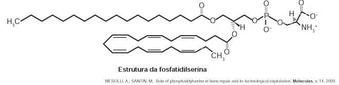 A fosfatidilserina é um fosfolipídio aniônico cuja interação com cálcio livre regula processos de transdução celular e vem sendo estudada no desenvolvimento de biossensores nanométricos. A figura representa a estrutura da fosfatidilserina:
