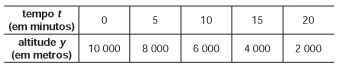 A tabela mostra a altitude y de uma aeronave, registrada pela torre de controle, t minutos após o início dos procedimentos de pouso.