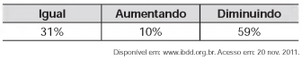 Pelos dados contidos na tabela, o número que mais se aproxima da quantidade de pessoas que responderam "diminuindo" é