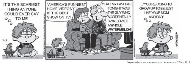 Tirinhas são construídas a partir de contextos sociais e podem promover reflexões diversas. Essa tirinha provoca no