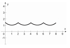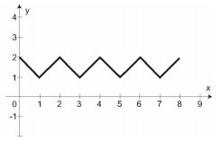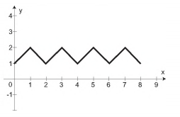 Seja F(x) a função que representa a distância da partícula P ao centro O do quadrado, a cada instante de sua trajetória, sendo x (em cm) o comprimento do percurso percorrido por tal partícula. Qual o gráfico que representa F(x)?