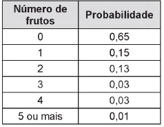O número de frutos de uma determinada espécie de planta se distribui de acordo com as probabilidades apresentadas no quadro.