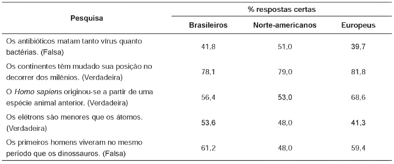 A tabela apresenta dados comparados de respostas de brasileiros,...