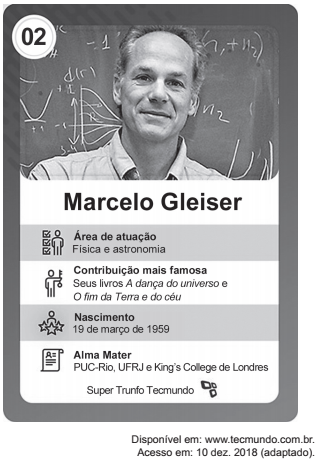 O texto tem o formato de uma carta de jogo e apresenta dados a...
