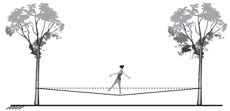 Slackline é um esporte no qual o atleta deve se equilibrar e executar manobras estando sobre uma fita esticada. Para a prática do esporte, as duas extremidades da fita são fixadas de forma que ela fique a alguns centímetros do solo. Quando uma atleta de massa igual a 80 kg está exatamente no meio da fita, essa se desloca verticalmente, formando um ângulo de 10° com a horizontal, como esquematizado na figura. Sabe-se que a aceleração da gravidade é igual a 10 m s−2, cos(10°) = 0,98 e sen(10°) = 0,17.