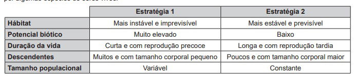 No quadro estão apresentadas informações sobre duas estratégias de sobrevivência que podem ser adotadas por algumas espécies de seres vivos.