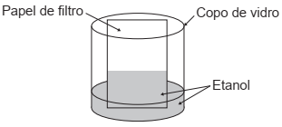 Um experimento simples, que pode ser realizado com materiais encontrados em casa, é realizado da seguinte forma: adiciona-se um volume de etanol em um copo de vidro e, em seguida, uma folha de papel. Com o passar do tempo, observa-se um comportamento peculiar: o etanol se desloca sobre a superfície do papel, superando a gravidade que o atrai no sentido oposto, como mostra a imagem. Para parte dos estudantes, isso ocorre por causa da absorção do líquido pelo papel.