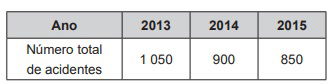 Suponha que a tendência de redução no número de acidentes nessa rodovia para os anos subsequentes seja igual à redução absoluta observada de 2014 para 2015.