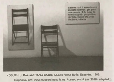 A obra de Joseph Kosuth data de 1965 e se constitui por uma fotografia...
