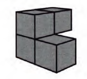 Em um jogo desenvolvido para uso no computador, objetos tridimensionais vão descendo do alto da tela até alcançarem o plano da base. O usuário pode mover ou girar cada objeto durante sua descida para posicioná-lo convenientemente no plano horizontal. Um desses objetos é formado pela justaposição de quatro cubos idênticos, formando assim um sólido rígido, como ilustrado na figura.