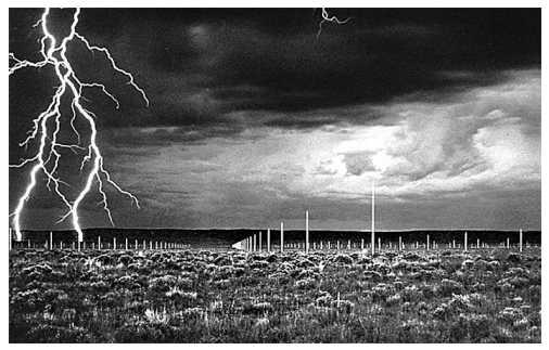 Na obra Campo relampejante (1977), o artista Walter de Maria coloca hastes de ferro em
