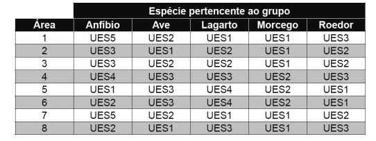 Pesquisadores delimitaram Unidades Evolutivas Significativas (UES) de cinco espécies pertencentes a diferentes grupos de vertebrados, distribuídos em oito áreas distintas, como mostra o quadro. Cada UES representa uma população isolada histórica e geneticamente diferenciada e apresenta prioridade para manejo e conservação.